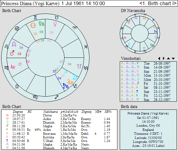 Surprisingly, there are interesting similarities between this and and the Scorpio chart. For instance; here we see lagna and 10th lord (Mercury) conjunct Rahu's dispositor (Sun) in 10th house.