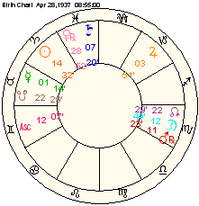 Hussein was born under the third sign of the zodiac (Gemini) with the lord of his Ascendant, Mercury, conjunct Ketu in the 12th house. This placement suggests difficulties in early part of life and indeed his biography confirms this. According to the time given, Saddam was born during the pratyantar of Moon, bhukti of Mars in Saturn (maha) dasa. As stated in his biography (below) his father died or disappeared before his birth.